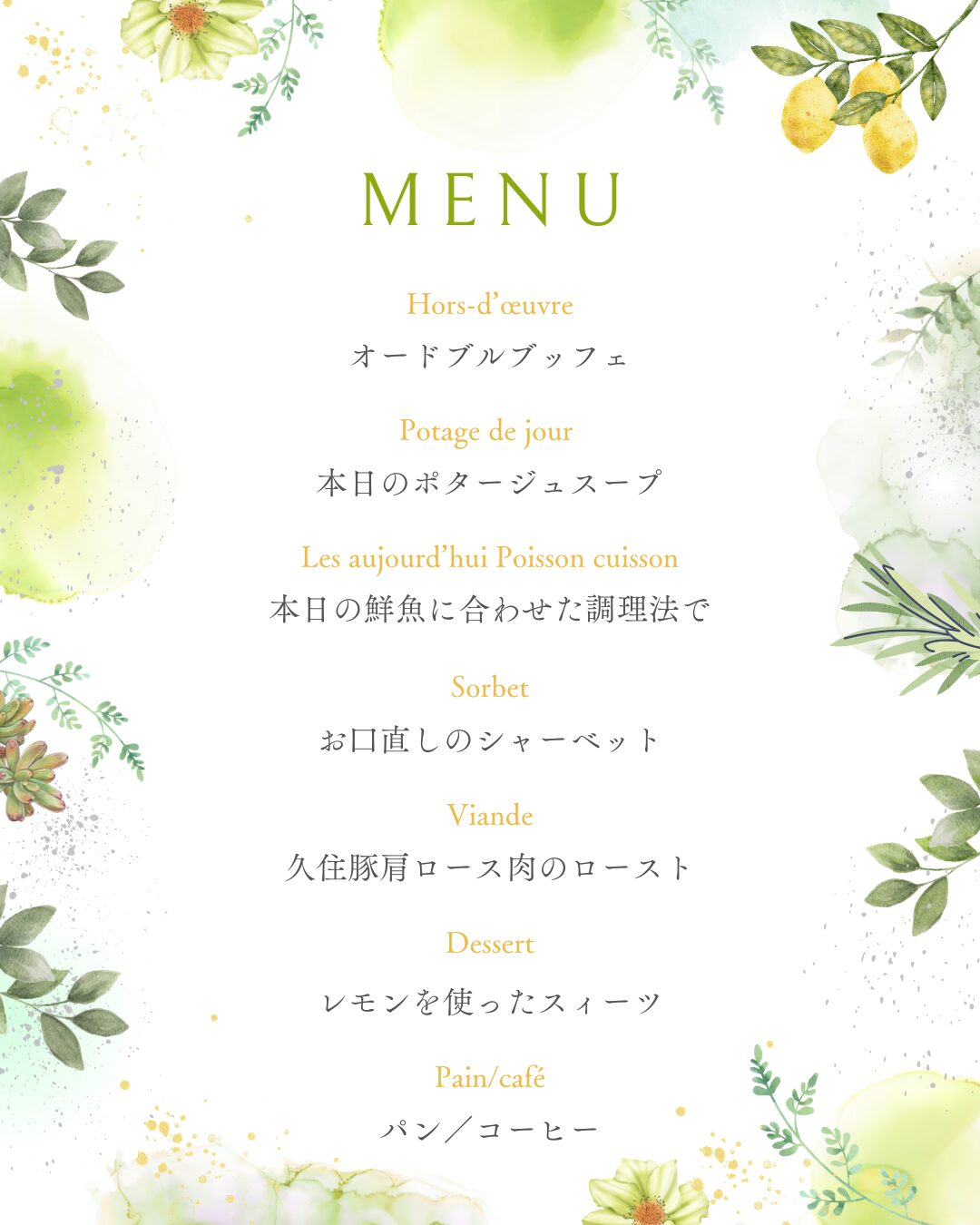 この日はランチ・ディナータイム共にこちらの特別コースのみの